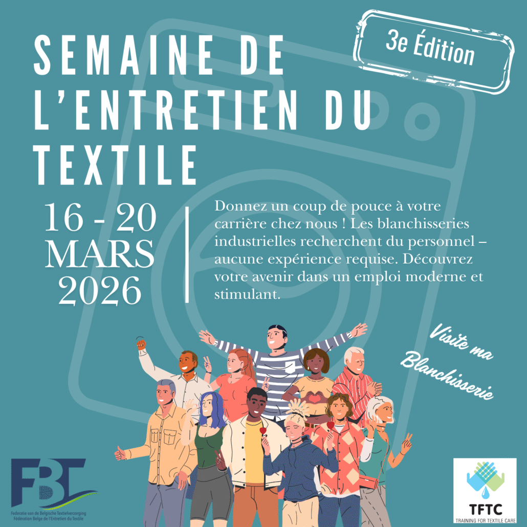 La semaine de l’entretien du textile est une initiative de plusieurs fédérations européennes où 8 blanchisseries membres de la FBT souhaitent mettre en avant leurs activités et leur importance pour la société. Venez rencontrer les blanchisseries et posez immédiatement votre candidature pour y travailler.